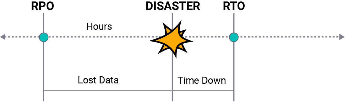Das Recovery Point Objective (RPO) bezieht sich im Allgemeinen auf die Datenmenge, die innerhalb eines für ein Unternehmen relevanten Zeitraums verloren gehen kann, bevor ein signifikanter Schaden entsteht, und zwar vom Zeitpunkt eines kritischen Ereignisses bis zum vorhergehenden Backup.
